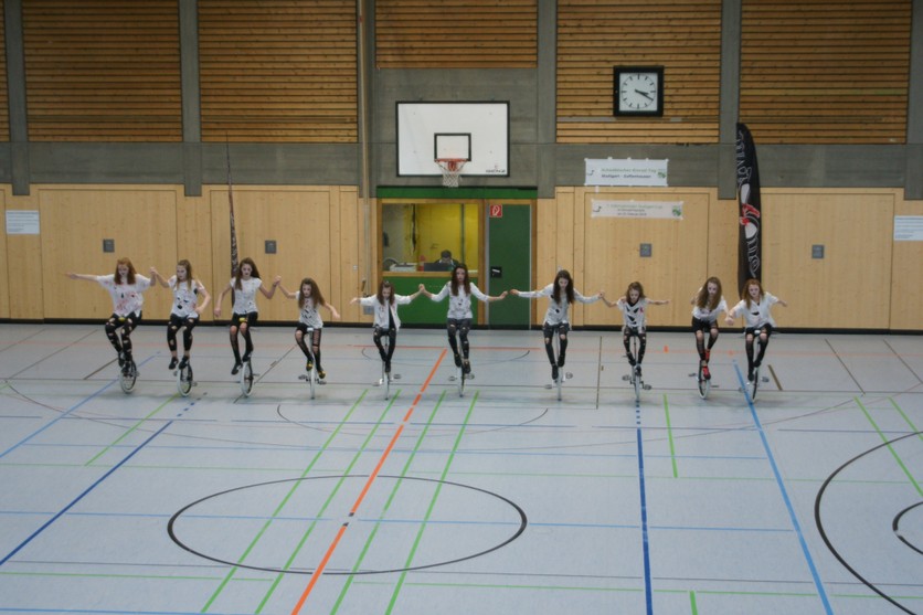 Am 24. und 25.02.2018 starteten wir dieses Jahr in Stuttgart auf dem Schwäbischen Einradtag in die neue Wettkampf-Saison. In Stuttgart treffen sich jedes Jahr alle Einradsportler aus dem Schwabenland, um in familiärer Atmosphäre ihr Können unter Beweis zu stellen. Erstmals fand am Sonntag der „Stuttgart-Cup“ statt, bei dem die erfahreneren Einradfahrer sich messen können. Wir waren mit 26 Jugendlichen wieder mit dabei und traten dieses Jahr gleich mit 3 Gruppenküren an.